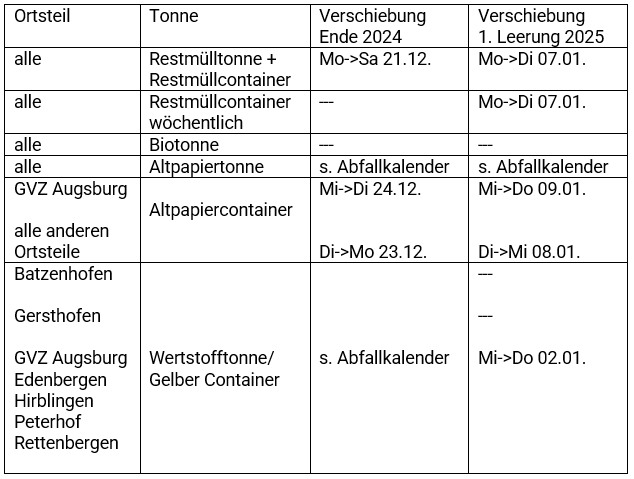 Sie finden diese und alle weiteren Abfuhrtermine online im Abfallkalender des Abfallwirtschaftsbetriebs des Landkreises (AWB) unter www.awb-landkreis-augsburg.de sowie in der kostenlosen AbfallApp des Landkreises Augsburg, erhältlich in den App-Stores.