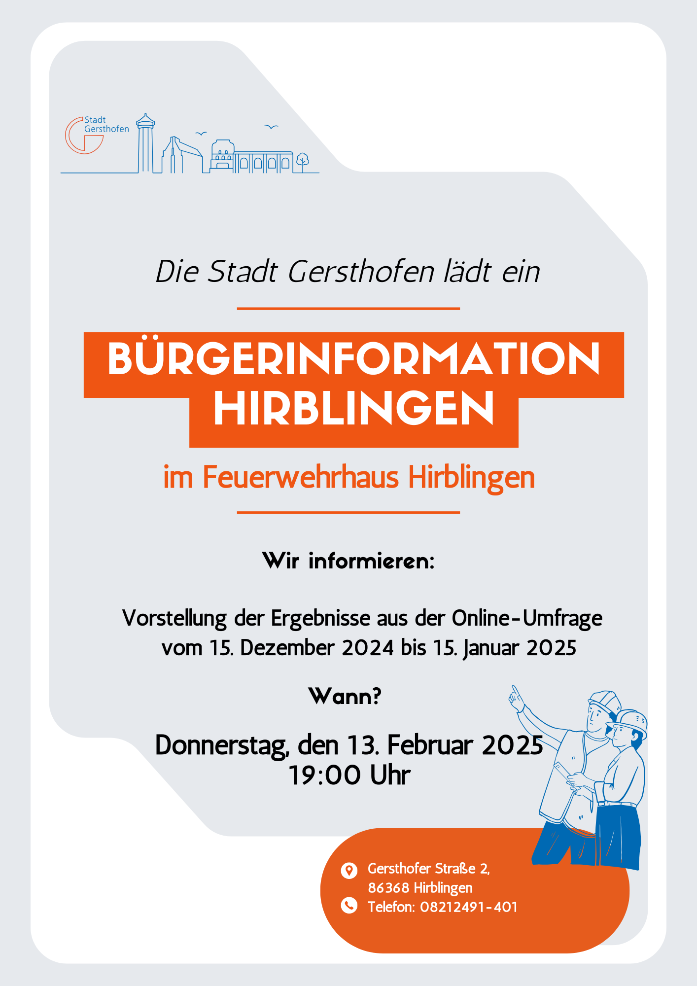 Die Ergebnisse der Online-Umfrage werden am Donnerstag, 13. Februar 2025 um 19 Uhr im Feuerwehrhaus Hirblingen vorgestellt. Dazu laden wir alle Interessierten herzlich ein.