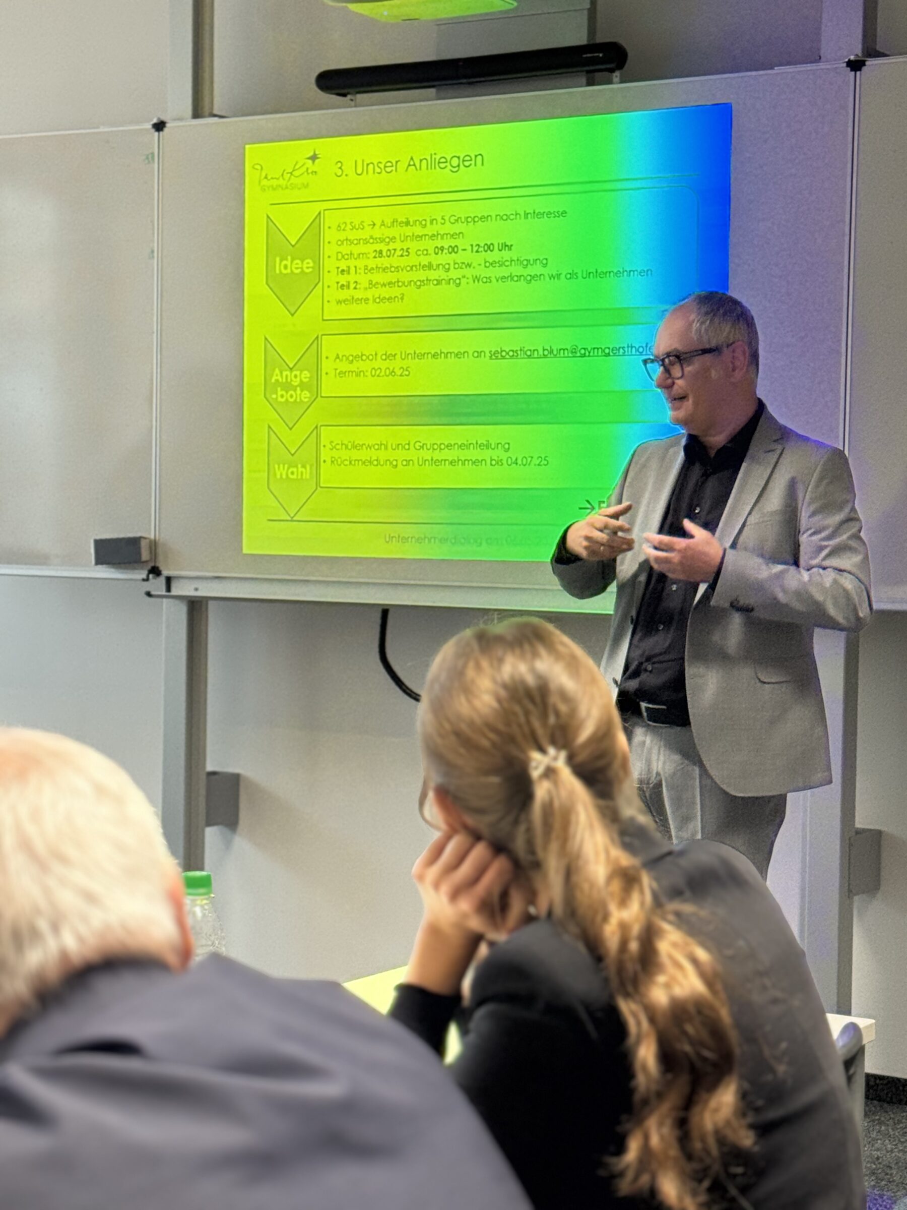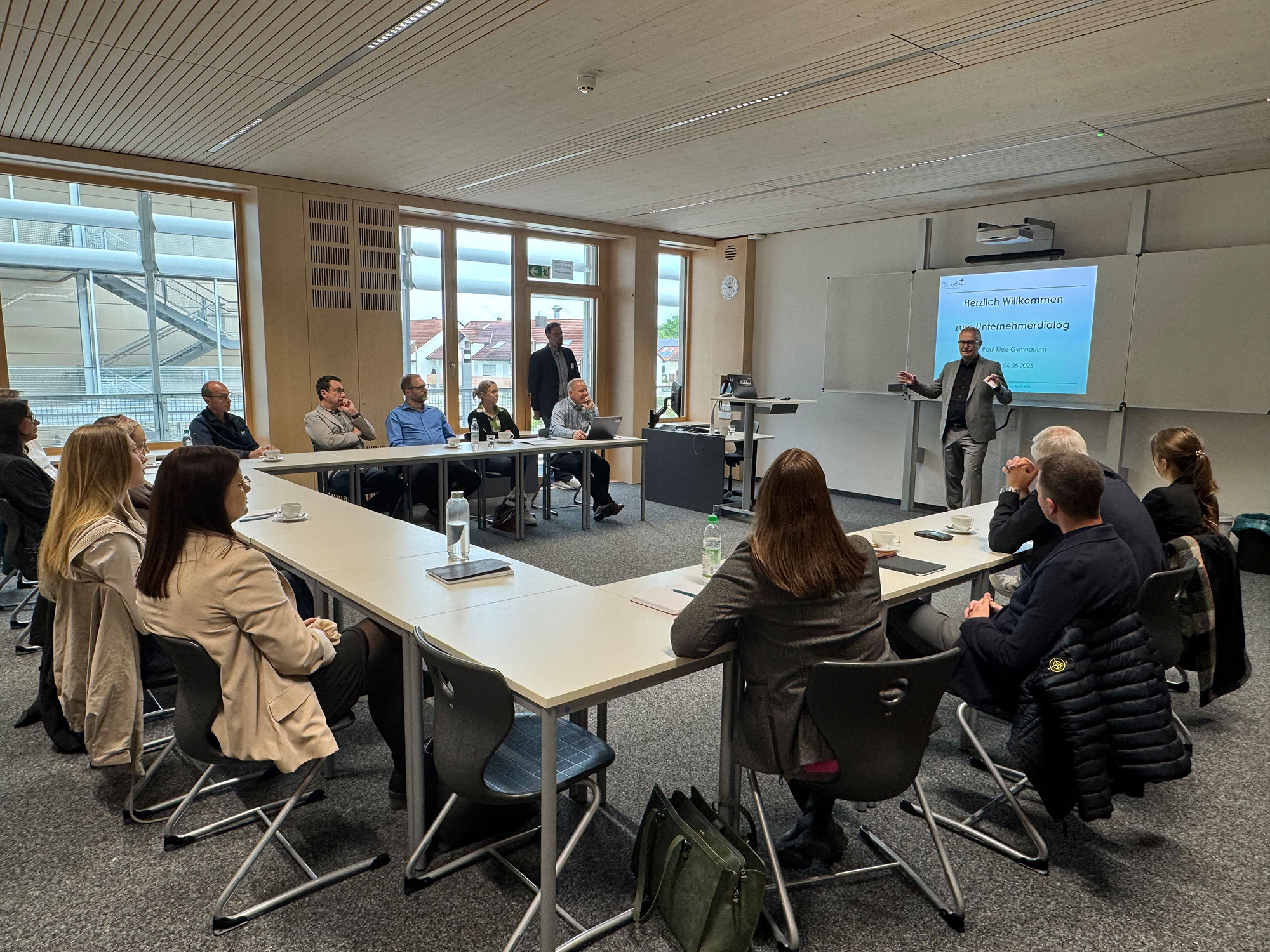 Der Auftakt zu dieser Reihe war die Berufsorientierung in der Oberstufe. Vertreterinnen und Vertreter Gersthofer Unternnehmen kamen mit Lehrkräften des Paul-Klee-Gymnasiums und ins Gespräch. Ziel des neuen Formats ist es, jungen Menschen praxisnahe Einblicke in die Berufswelt zu ermöglichen und gleichzeitig die lokale Wirtschaft bei der Nachwuchsgewinnung zu unterstützen.