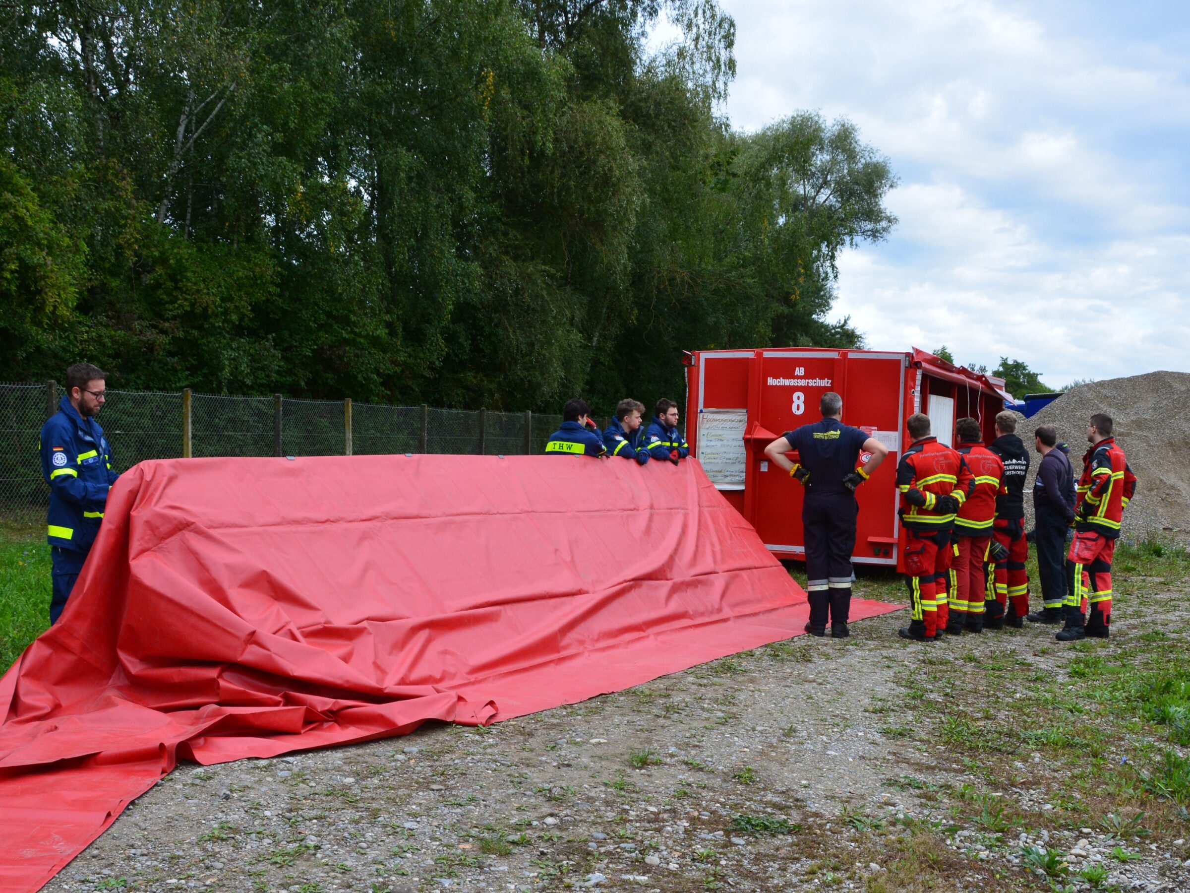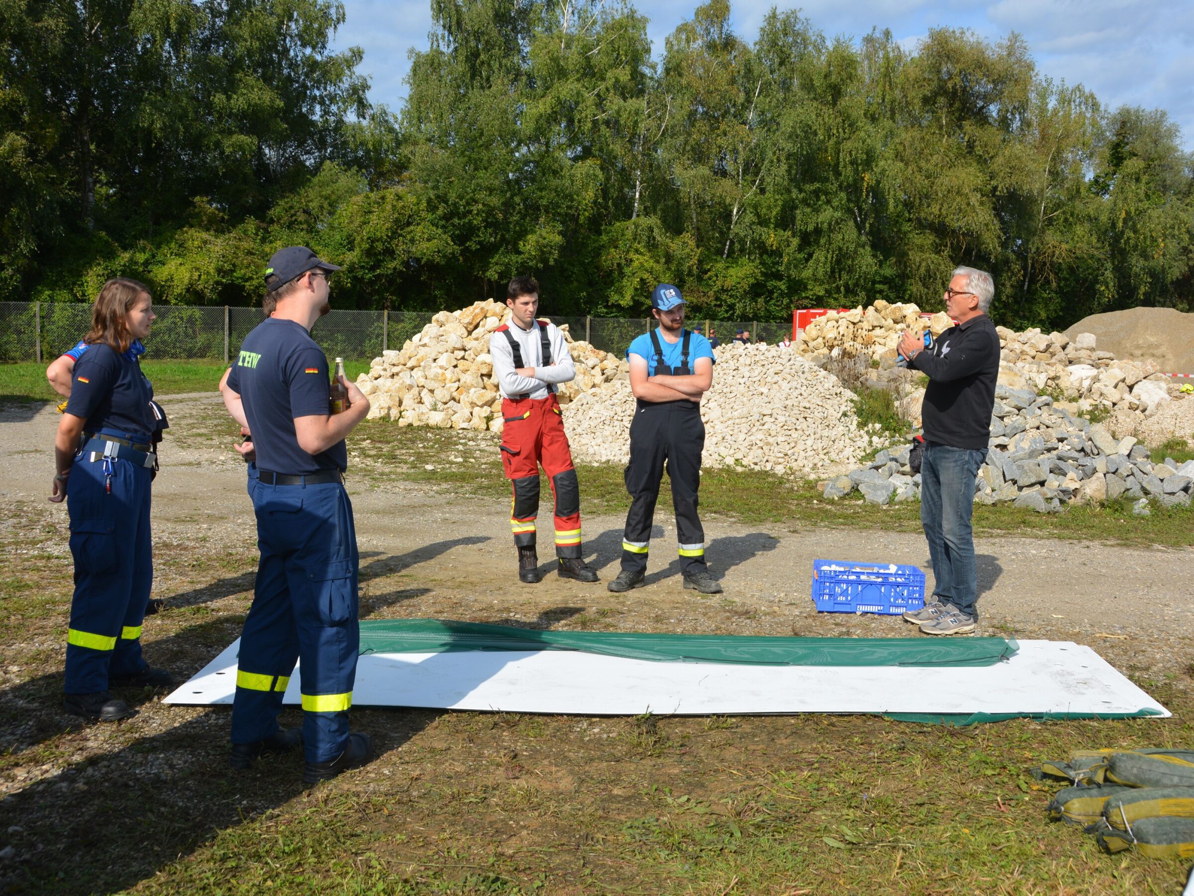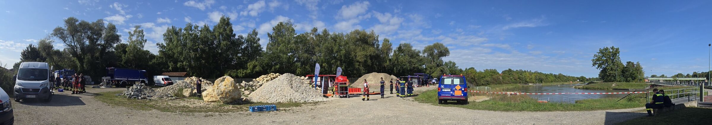 Das gemeinsame Training startete am Samstagmorgen und dauerte bis in den Nachmittag hinein. Teilgenommen haben insgesamt 65 Einsatzkräfte der LEW, dem THW Augsburg, dem THW Schwabmünchen, der Wasserwachten Gersthofen und Steppach, der Freiwilligen Feuerwehren Gersthofen und Batzenhofen sowie zwei Drohnenteams vom THW Freising und dem BRK Augsburg-Land.