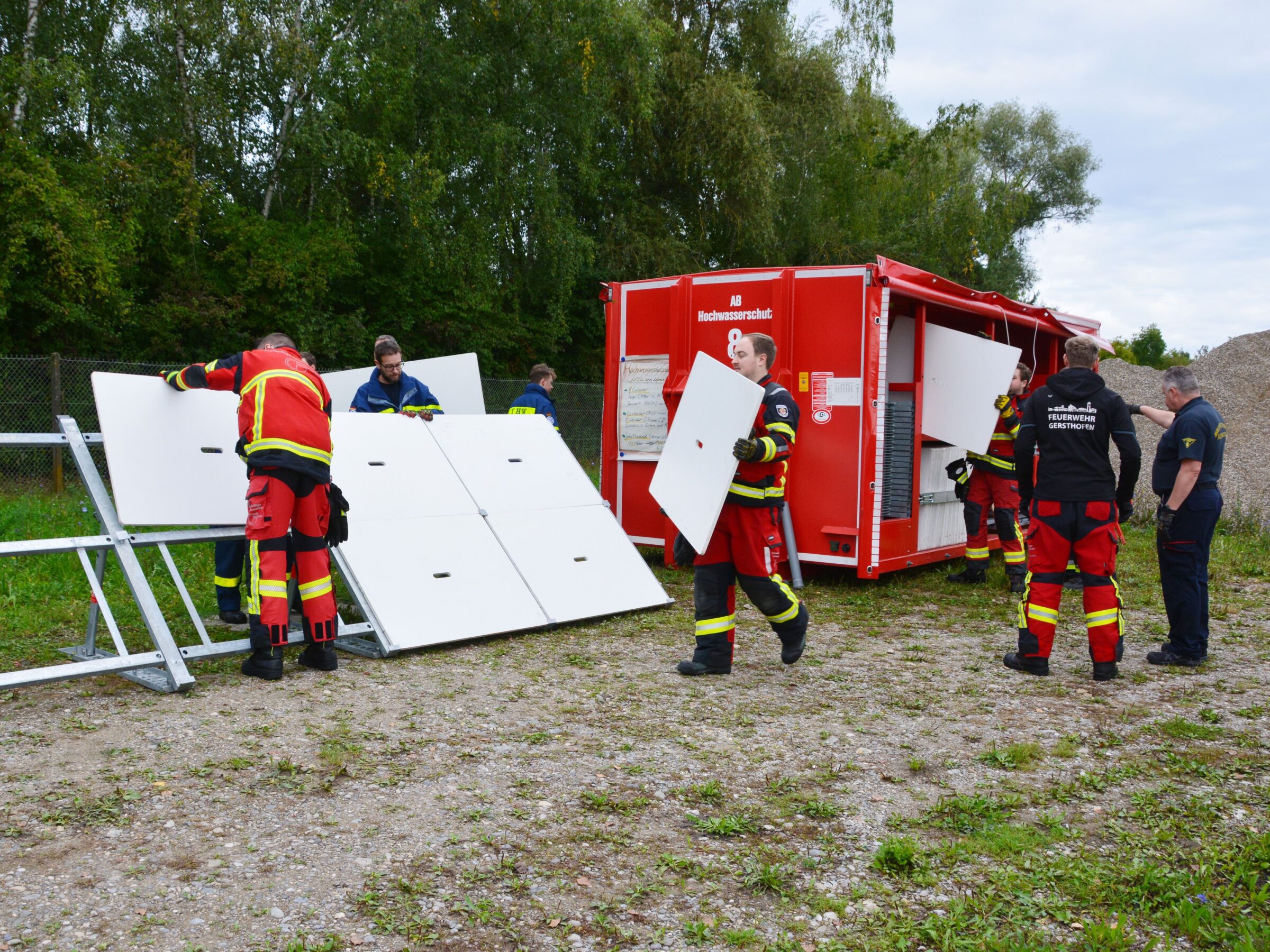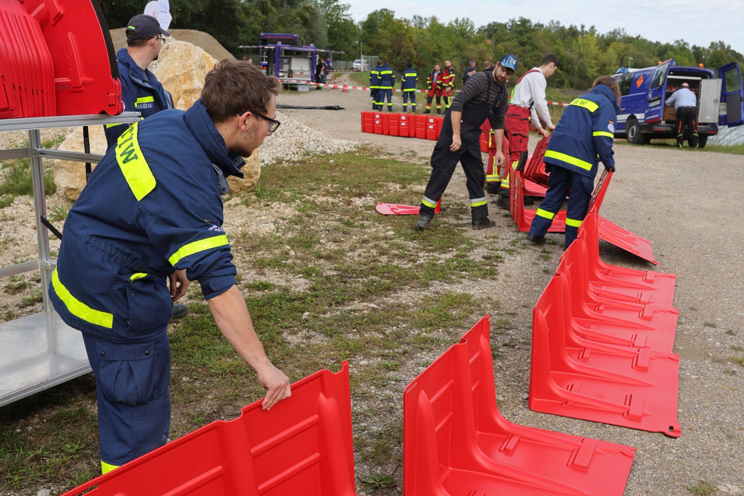 Am Samstag, den 13. September 2025, fand auf dem Gelände der LEW in der Nähe des Lechwehrs in Gersthofen eine Hochwasserkrisenübung statt. Dabei wurden unterschiedliche Schutzsysteme direkt vor Ort unter realitätsnahen Bedingungen auf ihre Einsatzfähigkeit überprüft. Erstmals wurde ein bislang nur theoretisch betrachtetes Szenario in die Praxis überführt: die kontrollierte Sprengung eines Musterdeichs, um einen Notüberlaufbereich gezielt zu aktivieren.