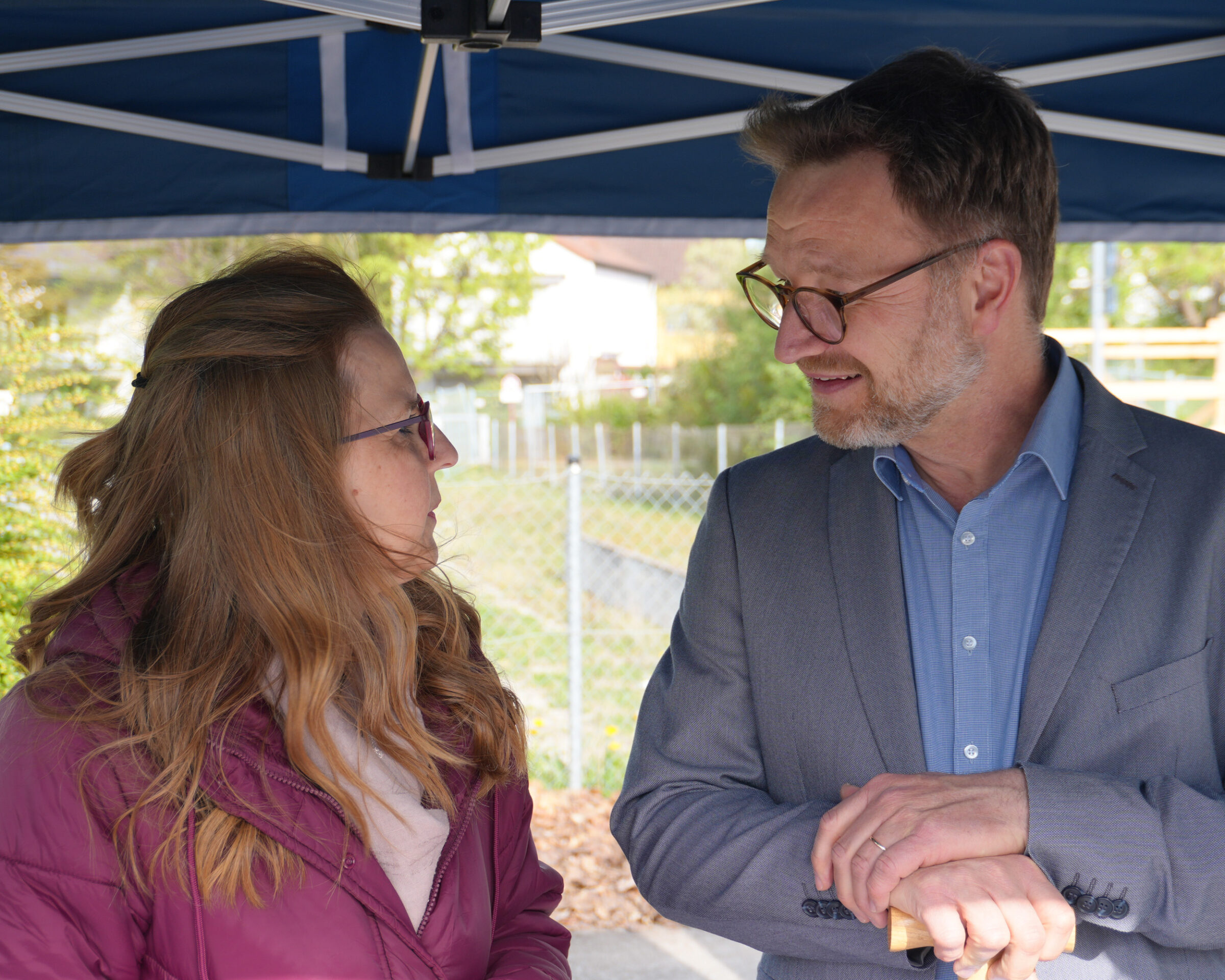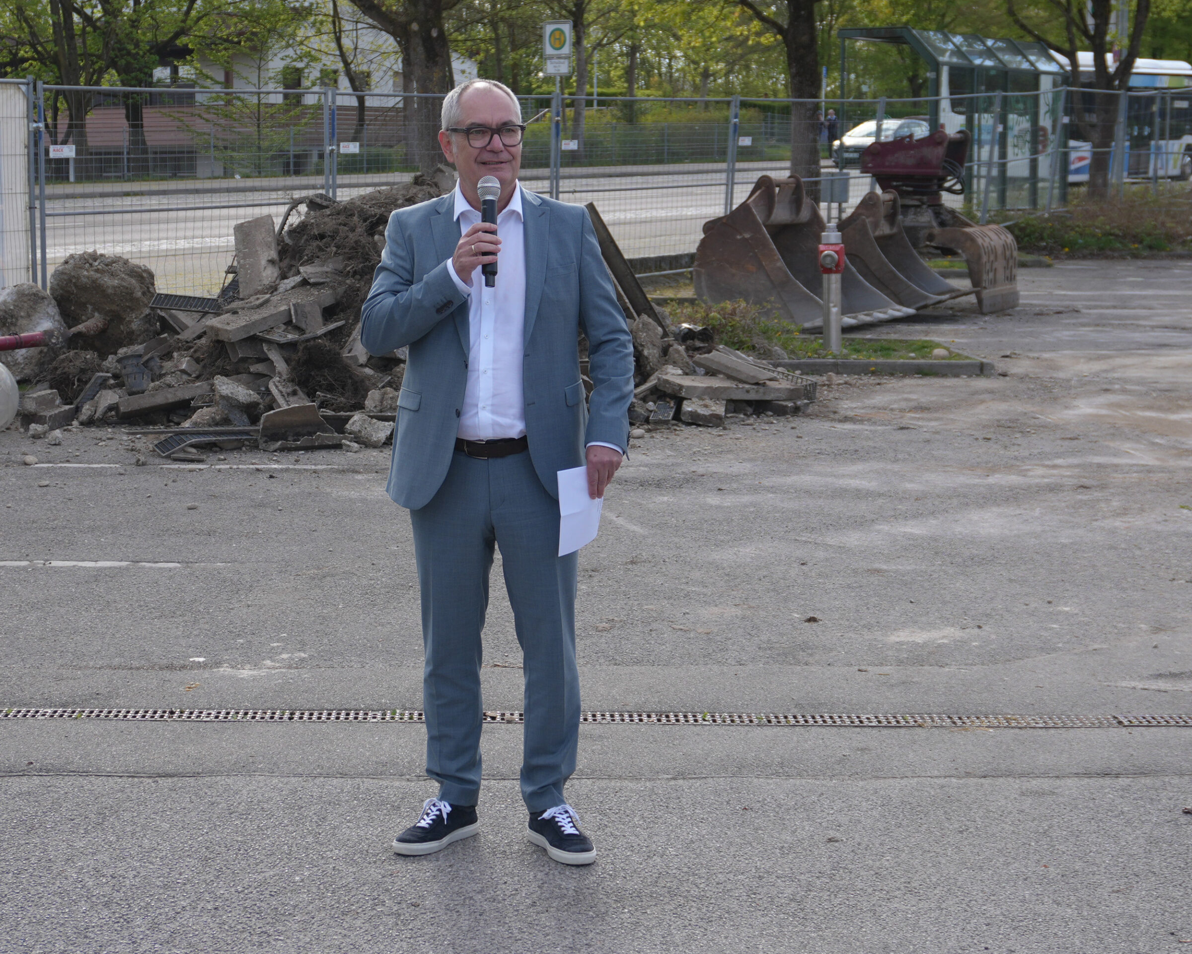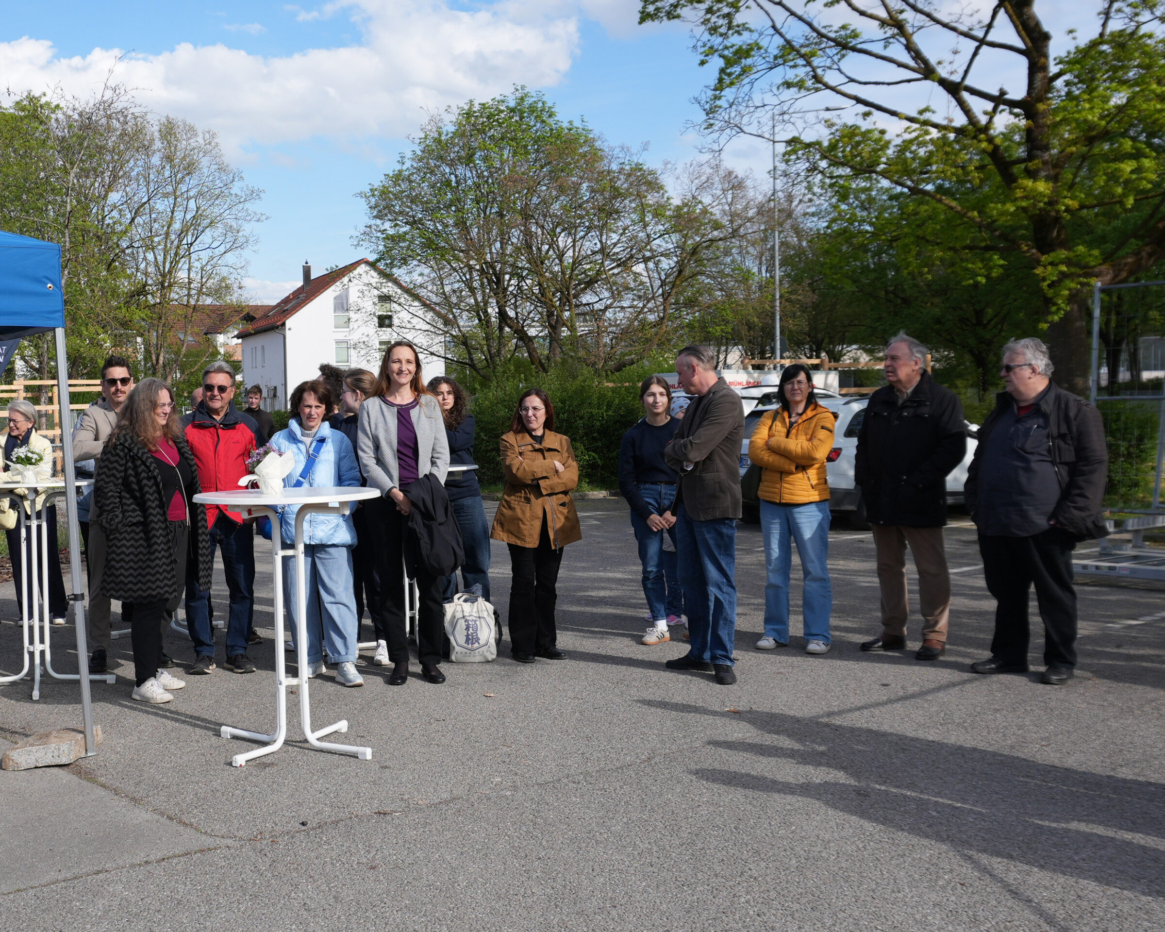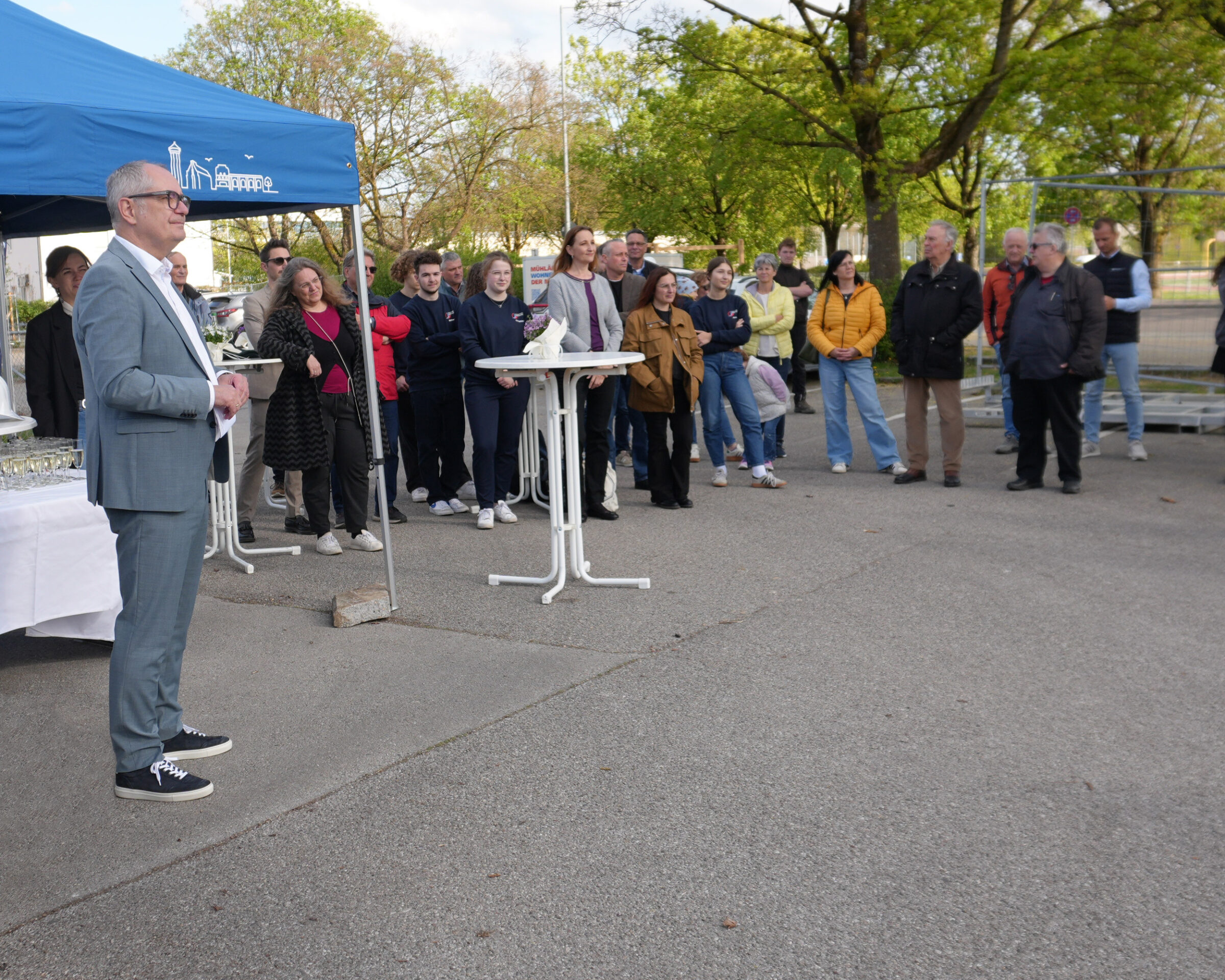 Zum Spatenstich kamen Gäste aus Politik, Vertreter des Jungendbeirats und der Stadtjugendpflege sowie Mitglieder der Verwaltung. Michael Wörle, Erster Bürgermeister, eröffnete die Feierlichkeiten, begrüßte die Gäste und schilderte die einzelnen Planungsphasen des Bauprojekts.