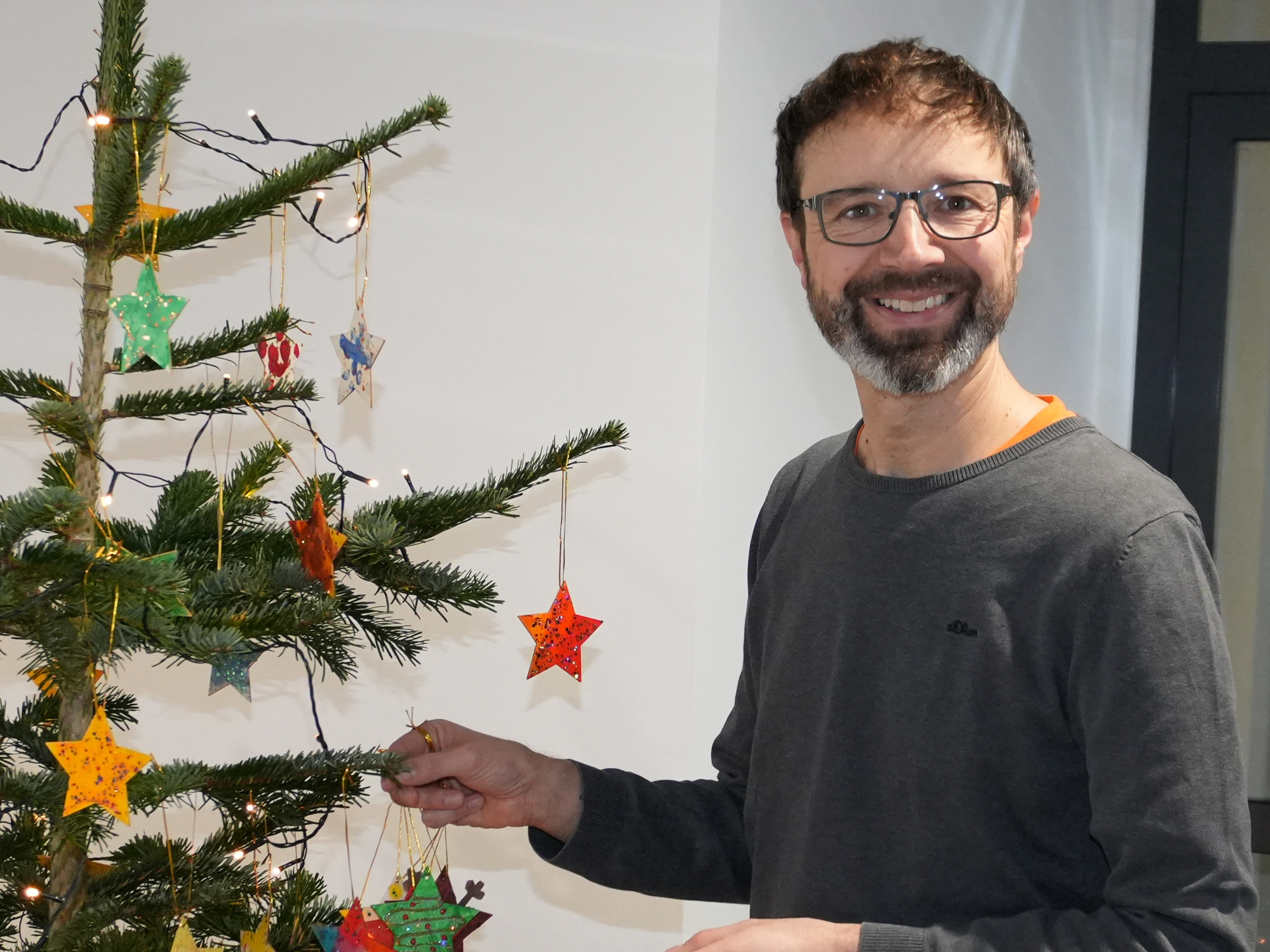 Stefan Krug, Sachgebietsleitung Soziales, hat den Weihnachtswunschbaum geschmückt und freut sich auf viele Teilnehmerinnen und Teilnehmer.