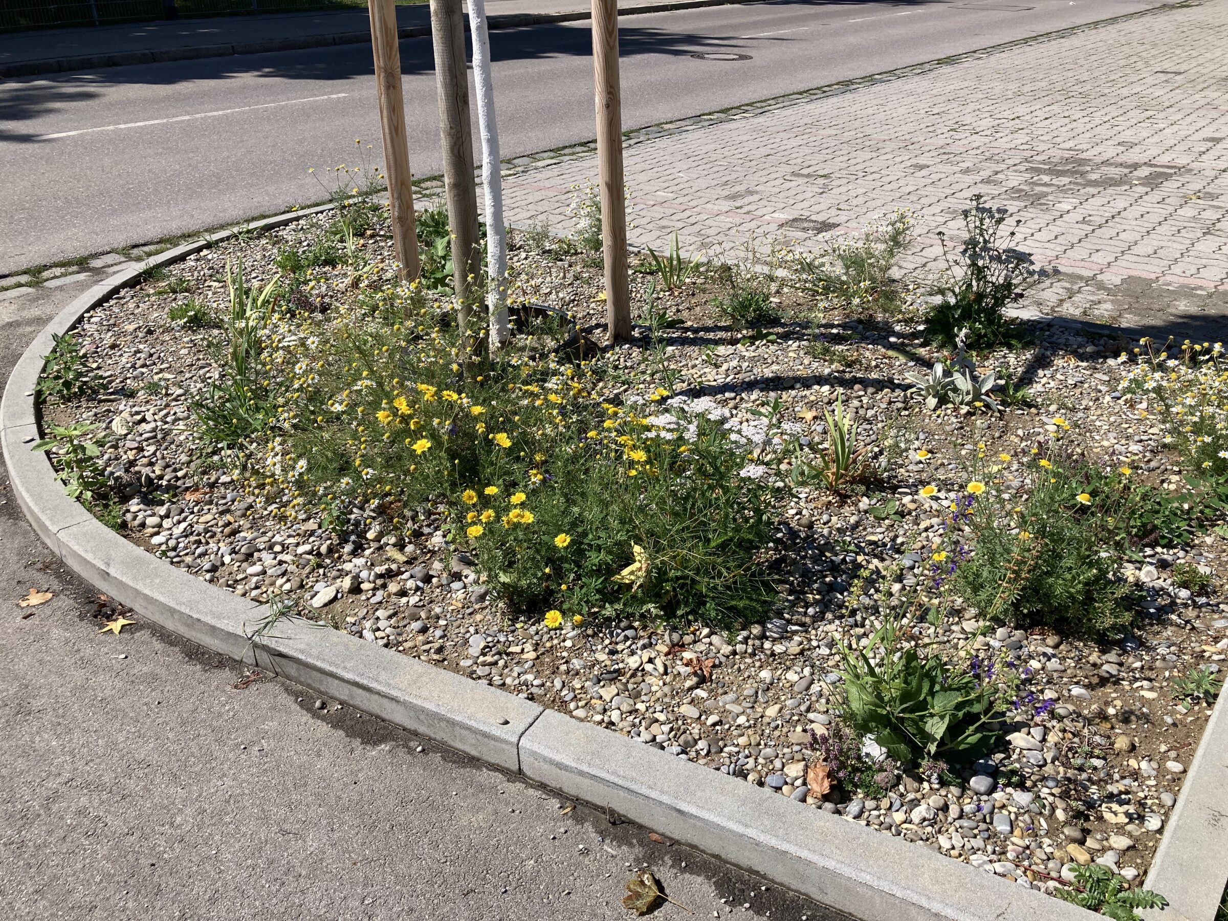 Der Platz an der Leipziger Straße in Gersthofen wurde entsiegelt, um die Biodiversität zu fördern und das Stadtklima in diesem Bereich zu verbessern. Abgeschlossen wurde ein Großteil des Umbaus im November 2023. Die Fläche wurde entsiegelt, drei neue Bäume gepflanzt sowie eine Fläche mit bienenfreundlicher und trockenverträglicher Staudenmischbepflanzung angelegt. Nun ist der Platz fertiggestellt worden.